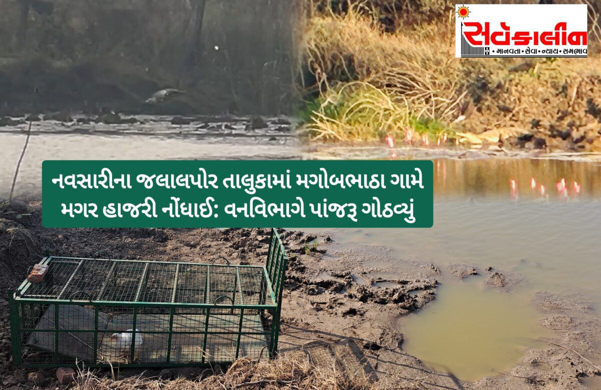 નવસારીના:મગોબ ભાઠા ગામે તળાવમાં મગરની હાજરી જણાઈ આવી, ગ્રામજનોએ મગર
