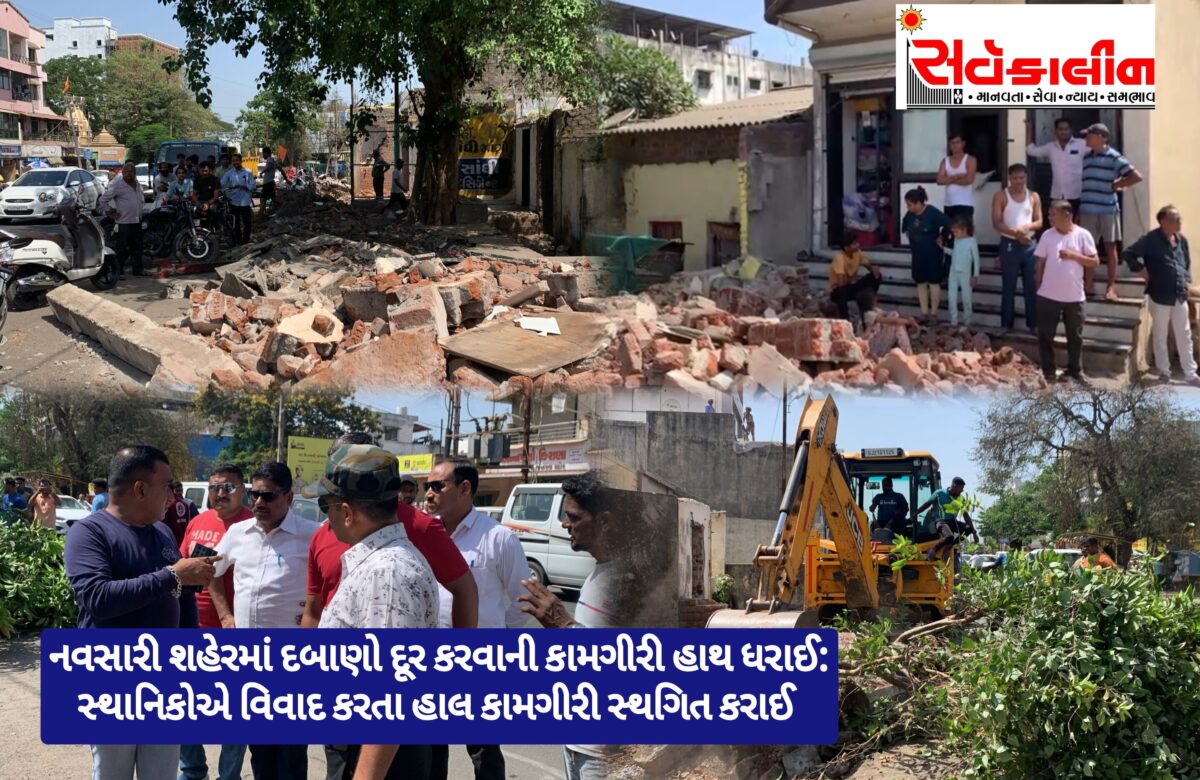 નવસારીના જમાલપુર વિસ્તારમાં મહાનગરપાલિકાની દબાણ હટાવ કાર્યવાહી દરમિયાન વિવાદ થતા, કામગીરી હાલ સ્થગિત કરાઈ નવસારી
