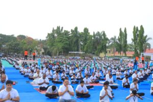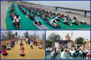 ઉજવણી કાર્યક્રમોની શરૂઆત વહેલી સવારે આહલાદક વાતાવરણમાં અને સૂરજદાદાનાં સોનેરી કિરણોના સ્પર્શ સાથે થયેલી. એક તરફ વિશાળ માનવ મહેરામણ અને બીજી તરફ યોગ મુદ્રાઓ, આસનો અને સુમધુર સંગીતના ત્રિવેણી સંગમે યોગાભ્યાસ અને તેની અનુભૂતિને દિવ્યતાના અનેરા સ્તર અને વિસ્તાર અર્પી હતી.