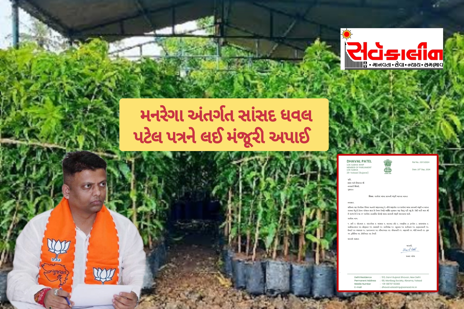 નવસારી જિલ્લાના વાંસદા તાલુકા ગામોમાં મનરેગા યોજના અંતર્ગત આંબા કલમો માટે જરૂરી મંજૂરીઓ ન મળતા ઘણાં લોકો અટવાઈ ગયા હતા.આ અંગે વલસાડ ડાંગ સંસદીય મતક્ષેત્ર આવતા વાંસદા વિસ્તારના લોકો આ અંગે લોકસભા દંડક અને વલસાડ ડાંગ સાંસદ ધવલભાઈ પટેલ રજૂઆત કરી હતી
