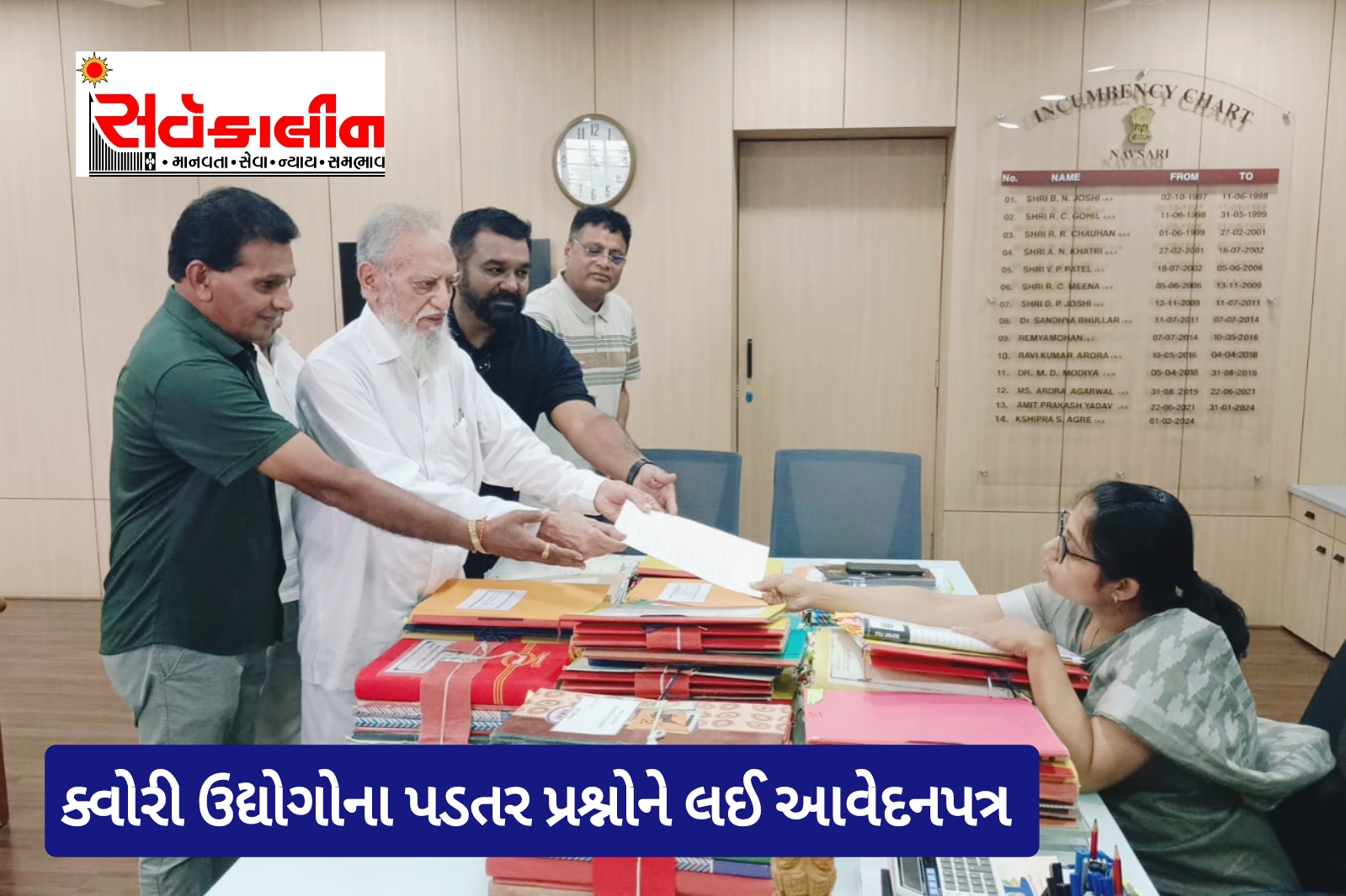 ગુજરાત રાજ્યમાં કવોરી ઉદ્યોગને લગતા પાયારૂપ પ્રશ્નોનું વાંરવાર સંબધિત આફિસોમાં જરૂરી રજૂઆત છંતાય હકારાત્મક નિરાકરણ આજદિન સુધી ન આવતાં આજે નવસારી જિલ્લાના ક્વોરી ઉદ્યોગ સાથે સંકળાયેલા વેપારીઓએ નવસારી કલેક્ટર ક્ષિપ્રા આગ્રેને આવેદન આપીને પોતાની વ્યથા તેમની સમક્ષ ઠાલવી હતી સાથે જો આગામી 26 ઓક્ટોબર સુધી નિરાકરણ ન આવે તો નવસારીની તમામ ક્વોરી બંધ થશે તેવી ચીમકી પણ તેમણે ઉચ્ચારી હતી.