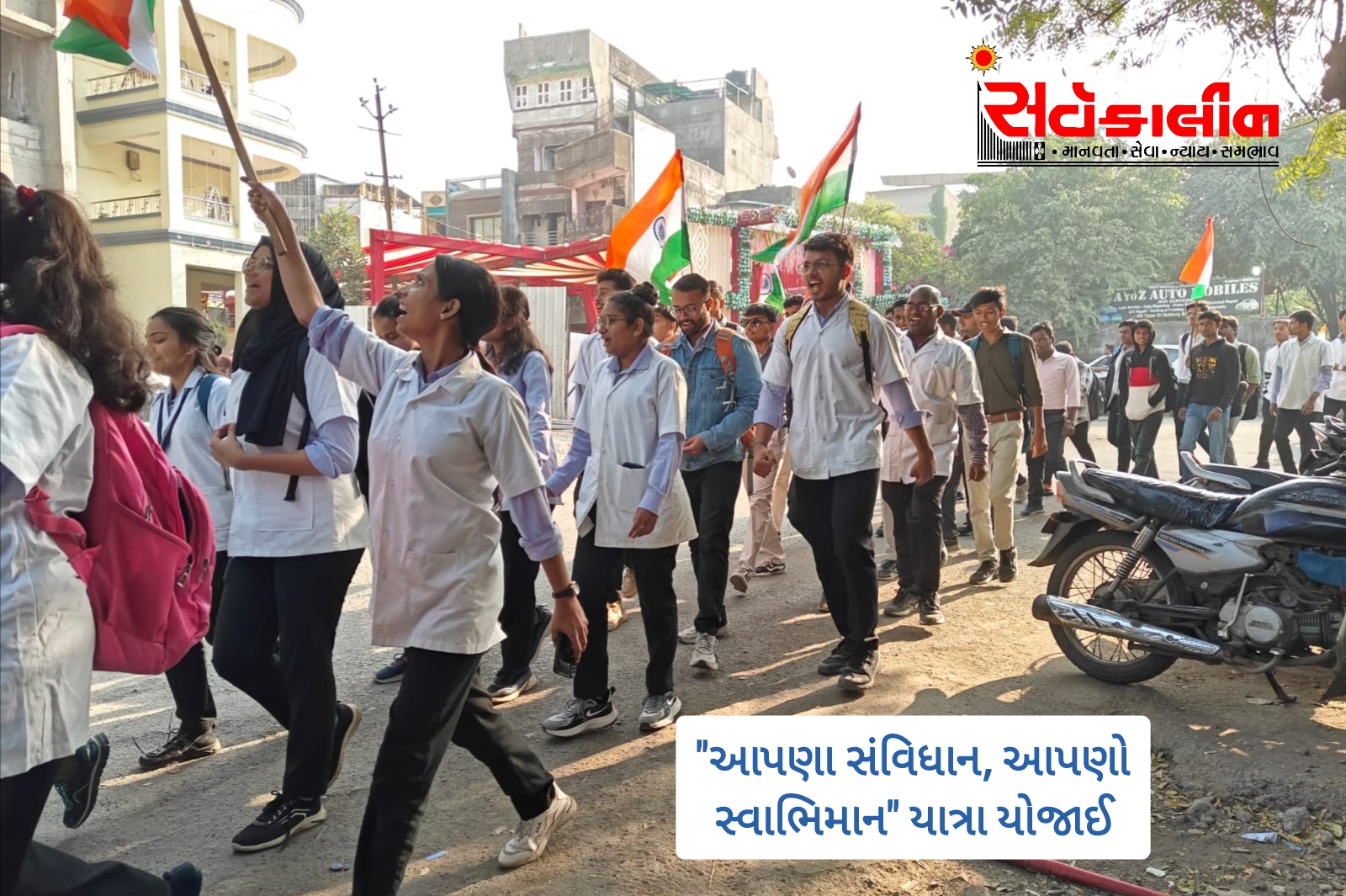 કાર્યક્રમની શરૂઆત સંકલ્પ પદયાત્રાથી કરવામાં આવી હતી, જે ફુવારા સર્કલથી શરૂ થઈને એમ. બી. ગોહિલ ફિઝિયોથેરાપી કોલેજ સુધી પહોંચી હતી. પદયાત્રા દરમિયાન, યુવાનોએ “આપણા સંવિધાન, આપણો સ્વાભિમાન” ના ઉત્સાહી નારાઓ સાથે સંવિધાનના મહત્વ વિશે જનજાગૃતિ ફેલાવી હતી.