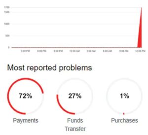 ડાઉનડિટેક્ટર મુજબ લગભગ 68% લોકો પેમેન્ટ કરવામાં સમસ્યાઓનો સામનો કરી રહ્યા છે. 31% લોકોને ફંડ ટ્રાન્સફર કરવામાં સમસ્યાઓનો સામનો કરવો પડી રહ્યો છે અને લગભગ 1% લોકોને ખરીદી કરવામાં સમસ્યાઓનો સામનો કરવો પડી રહ્યો છે.