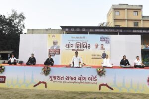 ગુજરાત રાજ્ય યોગ બોર્ડ દ્વારા નવસારી શહેરના લુન્સીકુઈ ગ્રાઉન્ડ ખાતે સ્વસ્થ ગુજરાત મેદસ્વિતા મુક્ત ગુજરાત અભિયાન અંતર્ગત આજરોજ પ્રાચિન ભારતીય પરંપરા દ્વારા માનવજાતને અપાયેલી એક અમૂલ્ય ભેટ એવી “યોગ વિદ્યા”ને વિશ્વ ફલક ઉપર લાવવા તથા માનવજાતને આરોગ્ય, સુખાકારી અને મનાવતા તરફ દોરવાના ઉમદા હેતુથી IDY કાઉન્ટ ડાઉનના ભાગરૂપે એક કોમન યોગ પ્રોટોકોલ તાલીમ શિબિર યોજાઈ હતી.આ યોગ શિબિરમાં નવસારીના શહેરીજનો સ્વાસ્થ્ય, સુખાકારી, યોગ પ્રત્યે જાગૃતિ આવે તેવા આશયથી મોટી સંખ્યામાં ભાગ લિધો હતો.