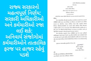 ભારતમાં જનજીવન પૂર્વવત થતા ગુજરાત રાજ્ય સરકારનો મહત્વપૂર્ણ નિર્ણય:હવે તમામ કર્મચારીઓ-અધિકારીઓ રજા લઈ શકશે,અનિવાર્ય સંજોગોમાં ફરજ પર હાજર રહેવું ફરજિયાત