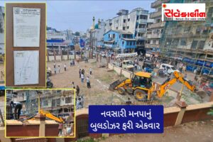 નવસારી શહેરમાં ફરી દબાણ હટાવવાની કાર્યવાહી: મનપાનું બુલડોઝર નવસારી સુરત રોડ પર ફરી વળ્યું