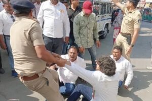 ફૂવારા ગાંધીજીની પ્રતિમા પાસે વિરોધ કરવા એકત્રિત થયેલા કાર્યકર્તાઓને ડિટેઈન કરી પોલીસ સ્ટેશન લઈ જવાયા હતા. જ્યાંથી તમામને મુક્ત કરવામાં આવ્યા હતા. પરંતુ, મુક્ત કરાયા બાદ કાર્યકર્તાઓ પોલીસ સ્ટેશનની બહાર જ સૂત્રોચ્ચા શરૂ કરી દીધા હતા. જેના કારણે પોલીસે ફરીવાર કાર્યકર્તાઓની ટીંગાટોળી કરી ડિટેઈન કરવામાં આવ્યા હતા.